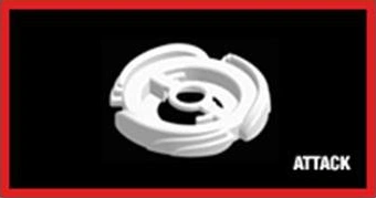 . Es ist so geformt, dass es den Gegner bei jeder Berührung wegstößt, was dazu führt, dass beide Beys langsamer werden und an Gleichgewicht verlieren. Allerdings wirken diese Kräfte stärker auf den verteidigenden Bey. Offensivscheiben sind gut im Kampf gegen Ausdauerscheiben, beispielsweise Flame, da Ausdauerscheiben sich nur lange drehen und nicht so gut Angriffe wegstecken können. Sie sind aber schlecht gegen Defensivscheiben, zum Beispiel Rock, da diese ihre Angriffe abblocken und den Schaden zurückwerfen, da sie sich nicht so leicht bewegen lassen.