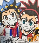 Aiger on a promotional Beyblade World banner featuring Beyblade Burst Rise