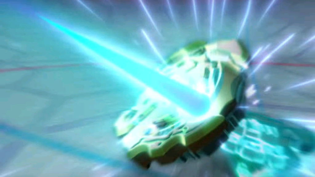After getting hit with a hard attack, Unicrest uses its Needle Performance Tip to hold its ground, then counterattacks with the sharp horn on its Energy Layer.