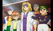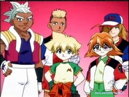 In G-Revolution, the attitude of the team changes and the others are forced to step aside for Max and Rick, both being new blood to the team. As Judy stated, they would come around later, which was later proven correct as they are seen on the sidelines supporting them. This time their team based itself on Rick's strong offense to match Max's strong defense, both balancing each other out. When BEGA took control of Beyblading, the All Starz joined the newly reunited G Revolutions on their quest to bring back the BBA.