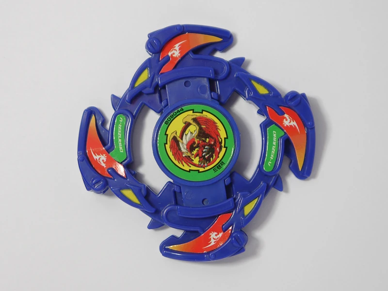 Cross Attacker is a fairly small Attack Ring, taking the form of four phoenix heads, each followed by a wing. Each wing has a steep slope, suitable for Upper Attack in right spin, though due to their short length and the fact they lack any additional ability to reach under opponents, they produce noticeably less Upper Attack than mainstays of the type, such as Kid- and Master Dragoon's Upper Dragoon, or even Driger G's Triple Tiger. The sets of phoenix heads and wings are each separated by a single small spike, the leading edge of which juts out parallel from the Attack Ring. The miniscule size of these spikes mean they rarely make contact with the opponent, though their flat faces would likely result in little more than additional Recoil if they did.