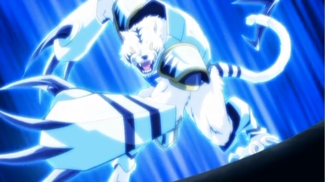 The abilities of Berserker Byakko proved its strength as it shred through bits of Guardian Leviathan 160SB's Warrior Wheel, damaging it heavily and depressing its owner. Baihu retracted his Bey and announced DNA's plans with fellow member, Yoshio Iwayama, who said Baihu was Kira's right hand man, which provoked Zyro Kurogane and Co. as they immediately challenged the DNA Bladers. Baihu left, but he said he would "be back before too long."