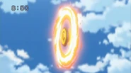 Battles unfold at each location of Beyster Island. Ryuga raises his Dragon aura, and draws closer to the leading group at a terrifying speed despite being the last entrant. However, King is interested in that strength, and personally challenges him to a match. Meanwhile, Gingka chases after Kenta and heads onto a ferry anchored at a lake. The joy of their reunion is cut short, so Kenta, who is awaiting him, challenges Gingka to a match. Having accepted the match in recognition of Kenta's seriousness, Gingka is surprised at the fact that Flame Sagittario C145S has become much stronger than before. He even managed to acquire a new special move. Meanwhile, Ryuga seems to be winning but King doesn't give up. He uses his powerup and continues batteling while Ryuga . It seemed like King was going to win but Ryuga beat him. Gingka defeats Kenta due to not having mastered his new specal move and Ryuga defeats King in the two awesome matches that both ended in a huge bang. Unfortunatly the ship Gingka and kenta were standing on splits in two later found out that they are ok. So both Gingka and Ryuga advance to the next round.