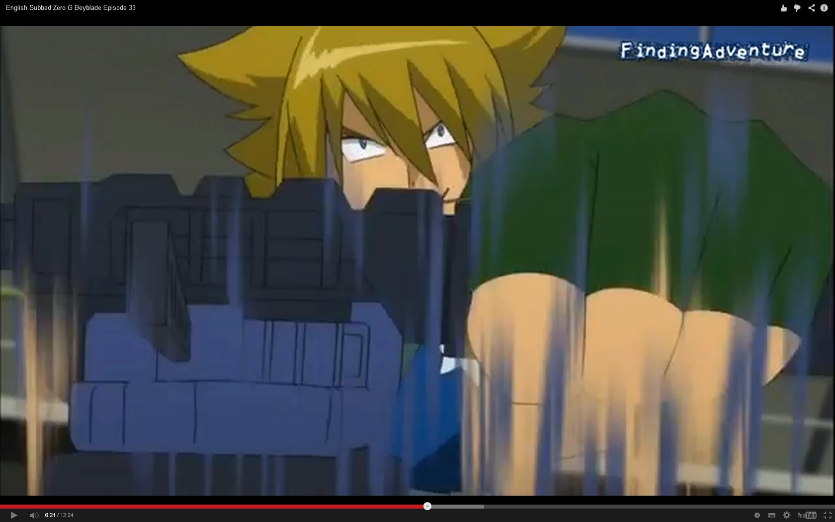 - In the scene where Spike Bourne proceeds to launch his Beyblade, his Bey is in the wrong place. As he is using a Zero-G Compact Launcher, his Bey should be on the underside, but is instead on the front, as if he was using a ZeroG Light Launcher. This mistake is also repeated when Genjuro Kamegaki and Captain Arrow launch their Beys.