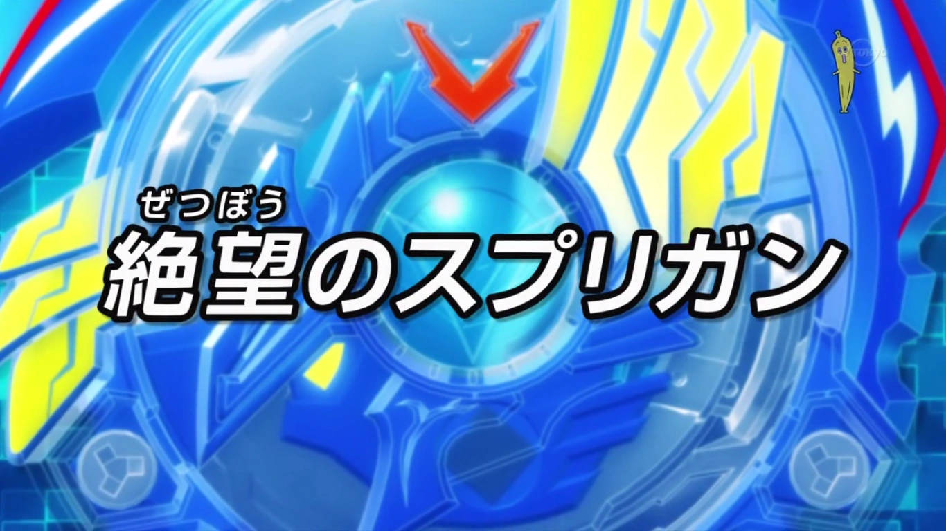 "Spryzen's Despair!" (絶望のスプリガン, Zetsubō no Supurigan; Hopeless Spriggan) is the eleventh episode of the Beyblade Burst anime. It first aired on June 13th, 2016 in Japan, and later aired on December 10th, 2016 in Canada and on December 31st, 2016 in America.