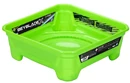 The Beystadium is a square "bucket" stadium with "X-Celerator Rails", a set of gears that interact with the gears on a Beyblade's Bit to activate the Xtreme Dash gimmick. Unlike Takara Tomy's Xtreme Stadium or Hasbro's Xtreme Beystadium, the X-Celerator Rails are molded onto the stadium instead of being a separate component. A third Knockout Zone has been added to one of the stadium corners, for a total of 3 Knockout Zones and 1 Xtreme Finish Zone.