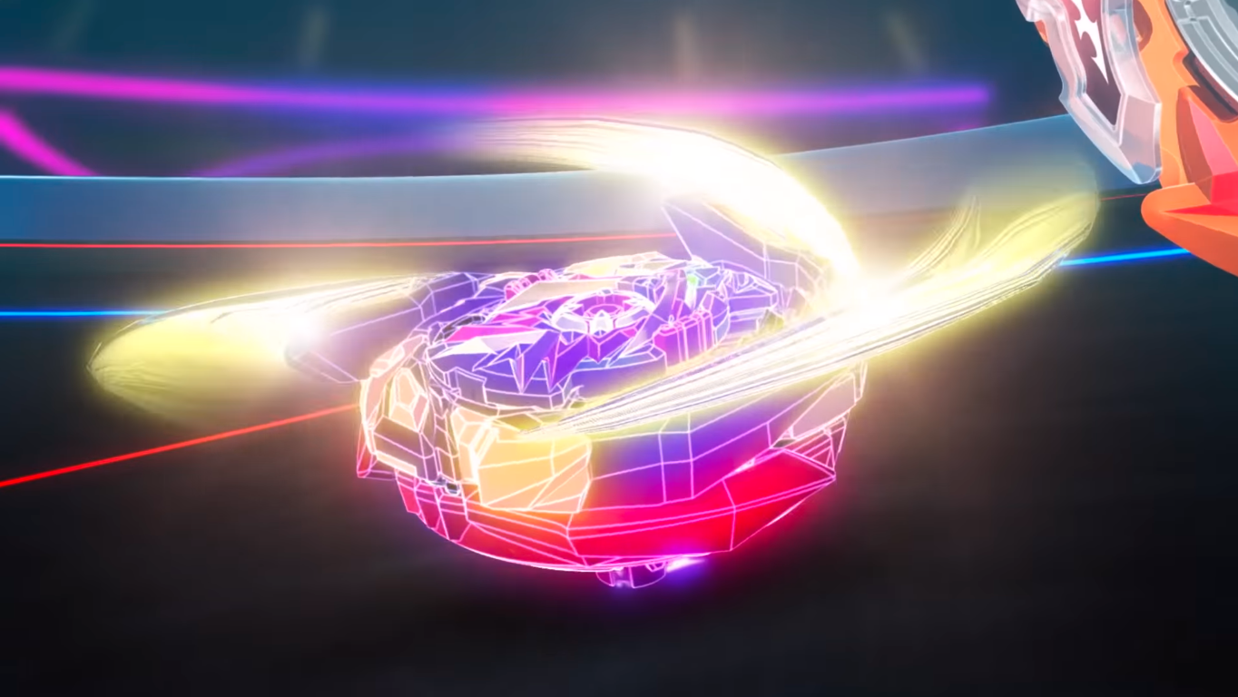 Utilizing its speed, Brave Valtryek strikes its opposing Beyblades with the three yellow rubber blades on the Brave Ring, dealing massive damage.