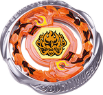 Takara Tomy's Burn Phoenix is a Stamina Type Layer that adapts the Phoenix Face, Phoenix Clear Wheel, and Burn Metal Wheel of the Metal Series' Hybrid Wheel System for the Burst System. As such, Burn Phoenix resembles the general shape of these parts, with a design consisting of wings and tails of a phoenix, and a circular perimeter with two sets of wave-like ridges. The three parts are noninterchangeable and combined into a single piece. The Phoenix motif adorns the center of the Layer, with the word "Phoenix" on the sides. Compared to the original parts, the Burn Phoenix Layer is much wider - the "Metal Wheel" portion of the Layer is made of plastic, with metal lining the circumference. Burn Phoenix has poor Burst Resistance due to its fine locks.