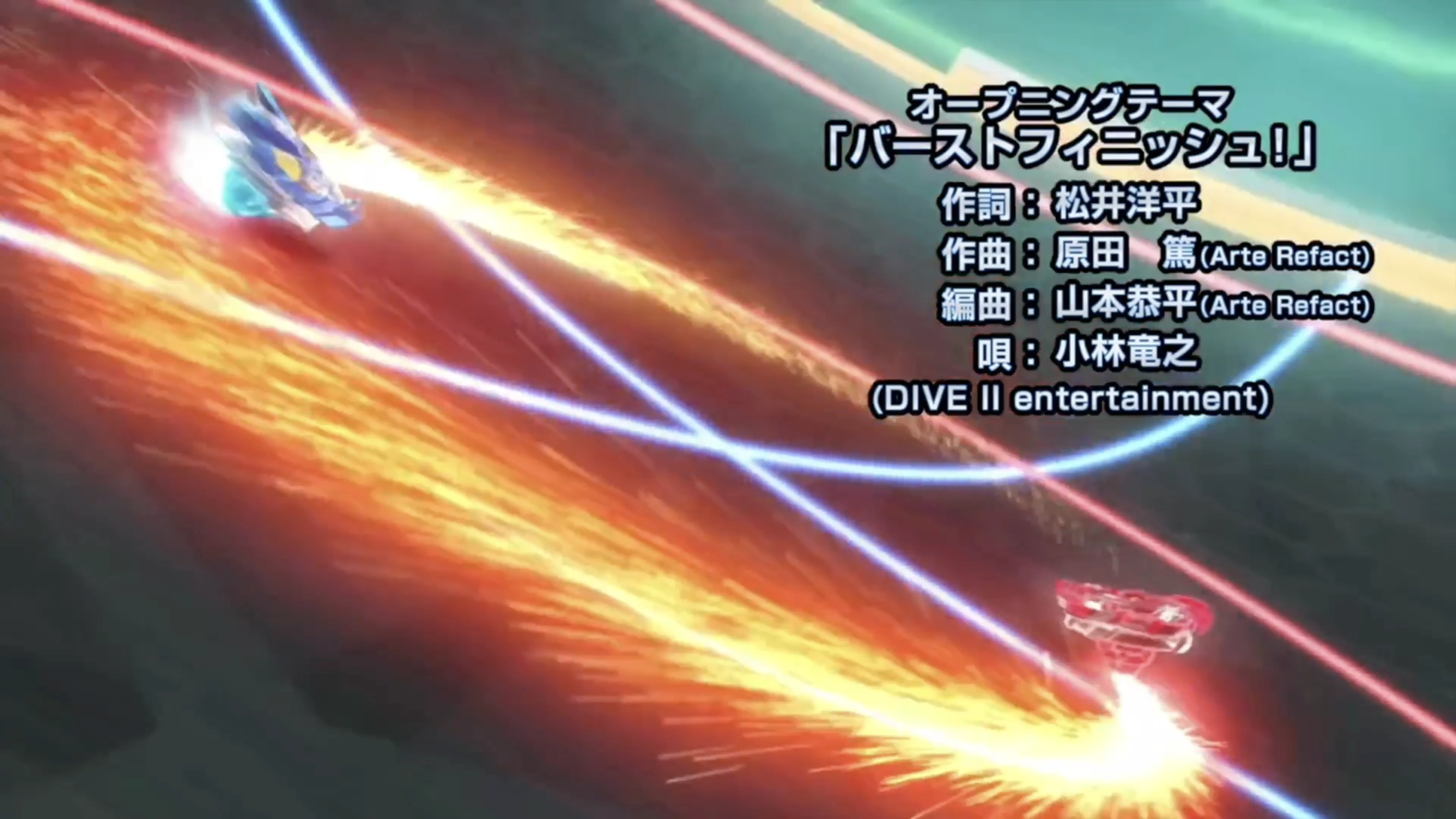 Burst Finish! is the Japanese opening theme to the Beyblade Burst series. It debuted alongside the first episode of the season, Let's Go! Valtryek!!. It is performed by Tatsuyuki Kobayashi.