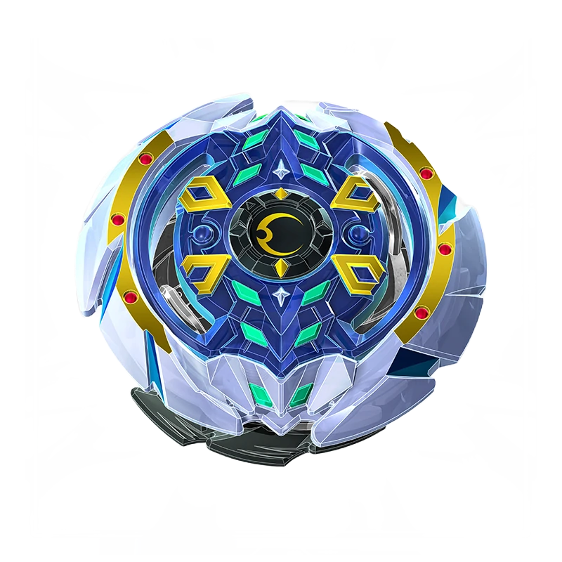 Takara Tomy's Deep Chaos is a Stamina Type Energy Layer that features an almost completely round perimeter made of two large wings with each wing is split into three blades. The primary points of contact come from a large gap on either side with the right hand side’s blade protruding further than the other, this blade is sloped in order to grant the Layer Upper Attack. As part of the God Layer System, Deep Chaos features a gimmick; the wings of the Layer are spring loaded, akin to God Valkyrie, in order to create “Bound Defense”, akin to Guardian Kerbeus and Jerk.