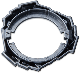 Axe is a wide triangular Disc Frame akin to its predecessor Vortex. Like Vortex, Axe features wave-like details on each of its three sides. Compared to Vortex, it is thicker and wider, making it an overall superior version of Vortex. Axe is one of the thickest and heaviest Disc Frames available, with its wide shape providing high Attack potential when paired with Core Discs such as 7 and 00.