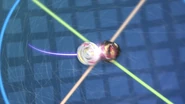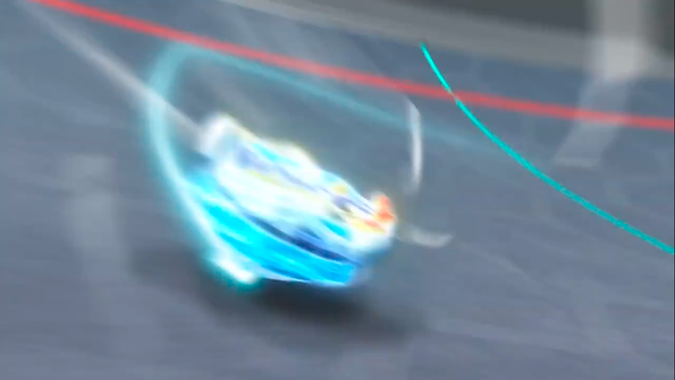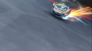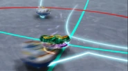 Dragon starts building up power by circling halfway around a Beyblade stadium, then ricochets off the stadium's wall. Dragon then attacks the opponent's Beyblade at full force.