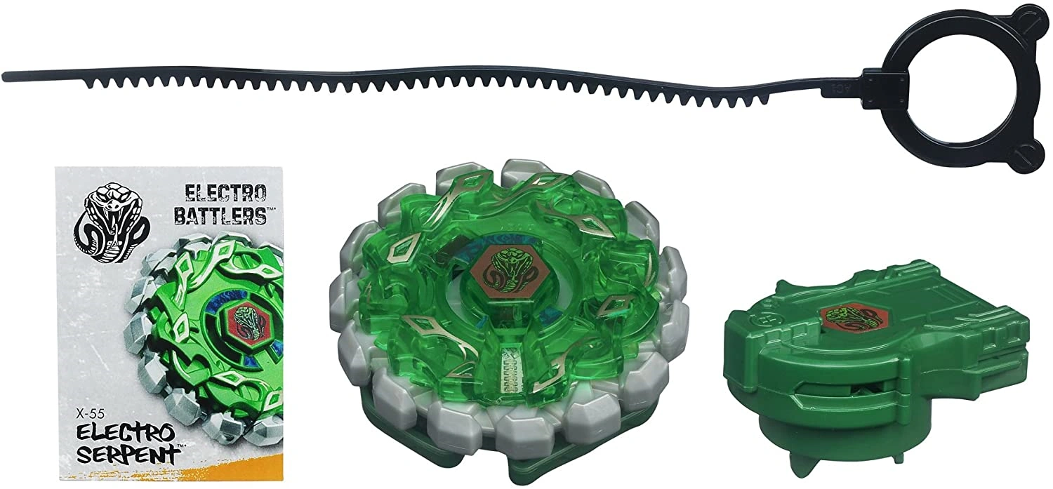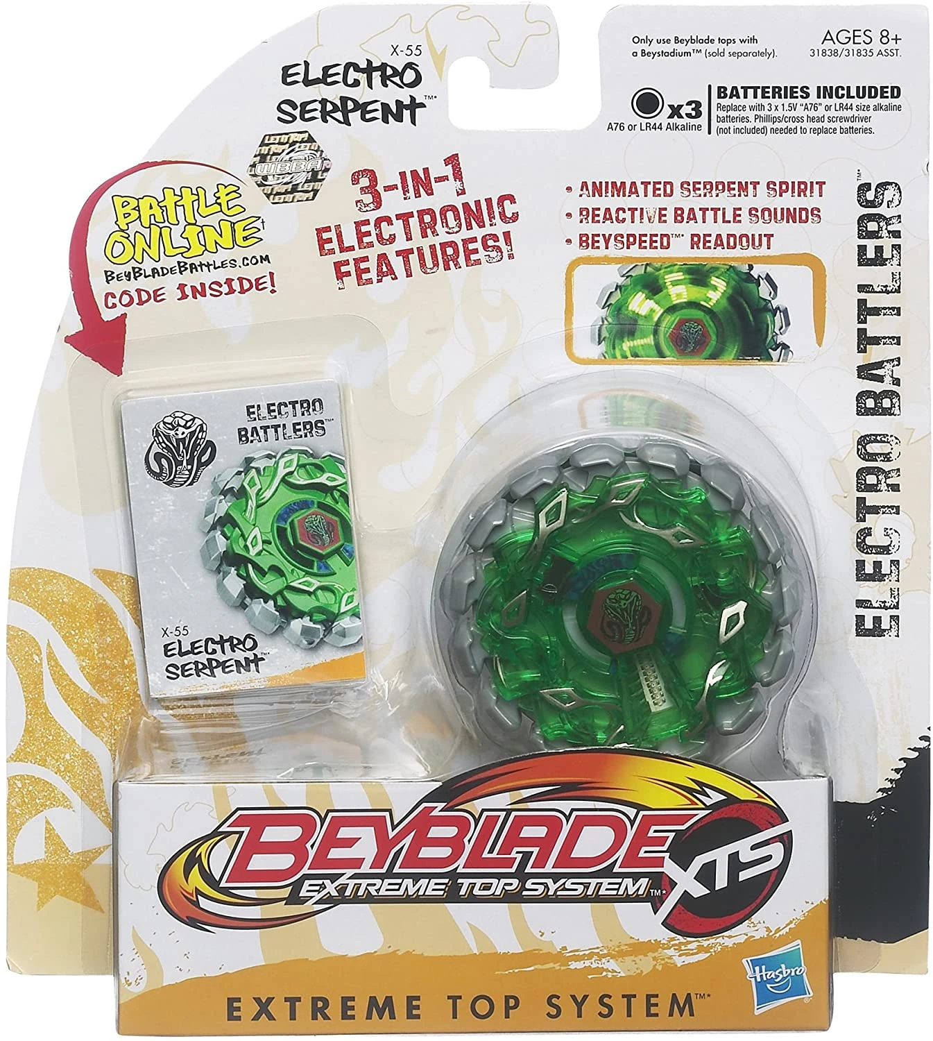 Electro Serpent is a release by Hasbro only, Electro Battler from the XTS, and a variation of Poison Serpent SW145SD. It is one of the beys in the Extreme Top System. It looks like the Poison Serpent, but is much bigger.