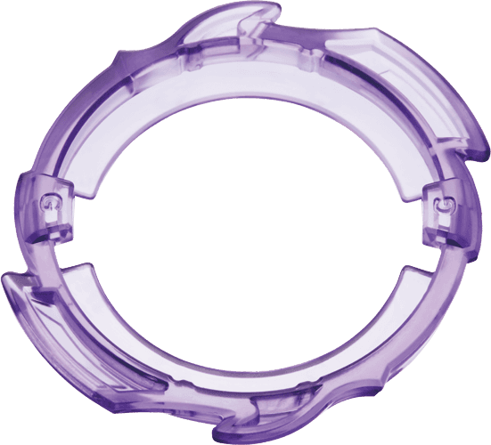 Glaive is a mostly round Disc Frame with two sharp, wave like protrusions on either side. While too small to come into contact with the opponent's Layer in battle, the round shape of Glaive grants high Life-After-Death while the upwards direction of the protrusions ensure they do not scrape along the stadium floor. While Cross has greater Life-After-Death, Glaive is still comparable.