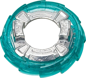 Ratchet is a round Forge Disc that consists of a metal core and plastic piece. The plastic piece locks in place against a Right-Spin opponent and spins freely against a Left-Spin opponent, akin to the Tornado Wyvern Energy Layer, to theoretically help with Spin-Equalization and shock absorption. However, in practice, the plastic piece has little to no effect as it is too small to come into any contact unless Disc-to-Layer contact occurs.