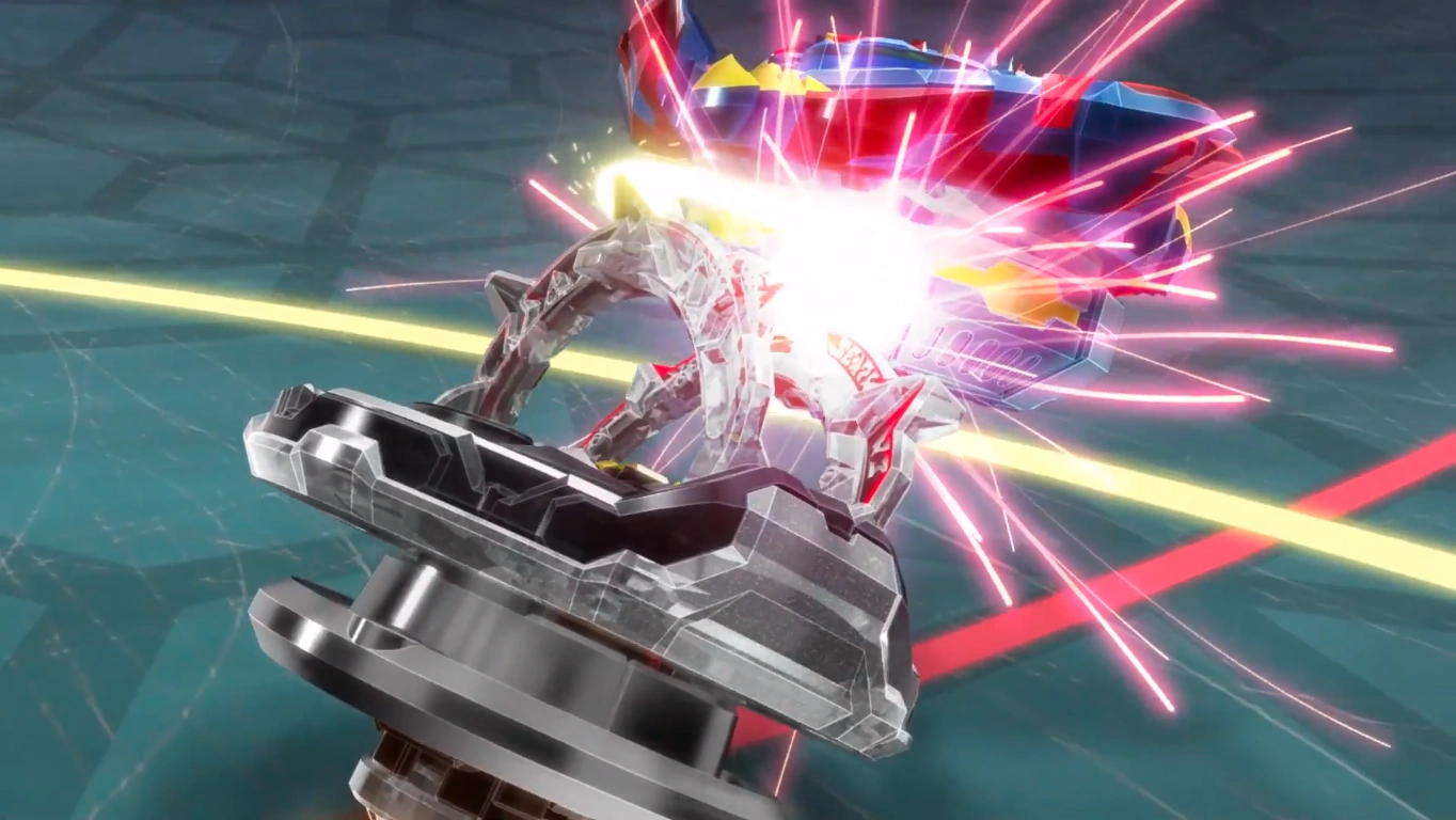 With the Glory Armor raised, Regnar moves in a circle around the center of the Beystadium and strikes the opposing Beyblade every time it bounces back toward Regnar.