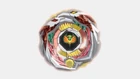 Garudas is a silver Warrior Wheel with a very intricate design. It has an edgy, jagged shape that is mainly circular since it is built for Defense and it uses many stickers that compliment and extend its motif. It has two eye stickers of different colors: its left eye is yellow and its right eye is red. They are put on two face inclinations that resemble heads of Garuda. The two Garuda heads use brown stickers as feathers and have designs for beaks. The left Garuda head is under the right Garuda head. They also use and green and red stickers to represent their respective wingspans. The right Garuda's wingspan even reaches down with its left arm holding onto the Element Wheel hole. Another noticeable feature are the prong stickers. The prongs use yellow stickers with seven, brown fangs on each. It creates an illusion that it is "consuming" its own Shogun Face Bolt, a feature previously utilized with Berserker Behemoth SR200BWD. Aside from this, due to the amount of asymmetry, parts of its Element Wheel get exposed.