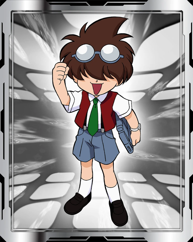 Kenny, known as Manabu Saien (才媛マナブ, Saien Manabu) in Japan, also known as Chief or Kyoujyu (キョウジュ, Kyōju; Professor) in Japan, is one of the protagonists from the Original Series, consisting of Beyblade, Beyblade: V-Force and Beyblade: G-Revolution. He is a member of the G-Revolutions and the BBA Revolution. He does not have a Bit-Beast and is primarily the Beyblade technician and mechanic of the team (but he has bladed in tournaments before).