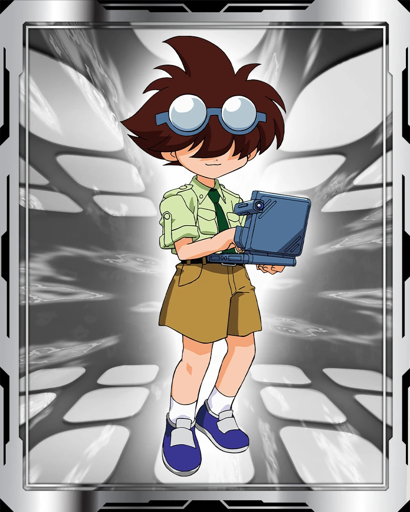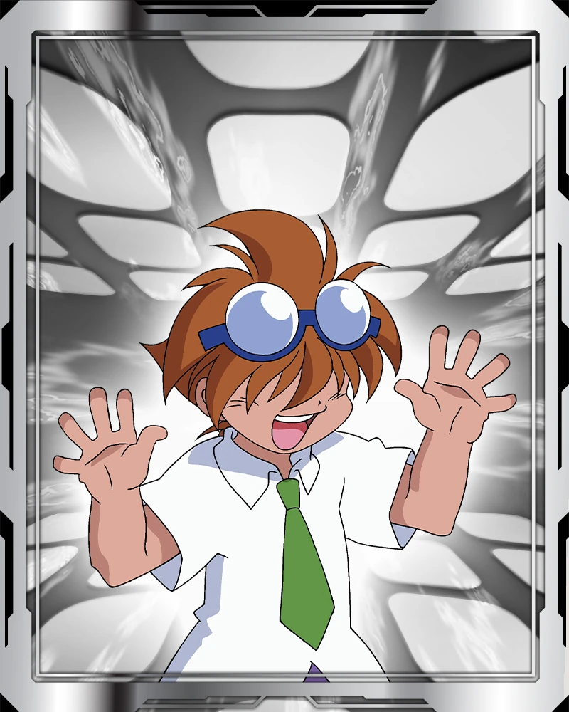 He doesn't Beyblade much, he prefers to be a Beyblade researcher knowing parts and using his computer database (referred to as "Dizzy" his bit beast in the American release) to find stats on parts during beybattles.