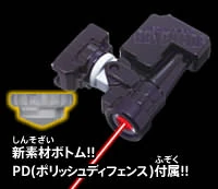 The LED Sight is a gadget that shows where the Beyblade lands. It can be attached to the Launcher Grip. It comes with a special Performance Tip called PD or Polish Defense, a Defense Tip.