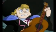 In the American Tournament, he fights against Kai Hiwatari of the Bladebreakers. Kai beats him by sending his Beyblade flying right out the stadium, severing the strings on his guitar launcher.