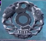 Fenrir is a silver Balance-Type Warrior Wheel. While mostly circular, it shape is very jagged and edgy. It is similar to Archer Gargoyle SA165WSF and Gladiator Bahamoote SP230GF in that it is one of the few Warrior Wheels to be symmetrical from left-to-right. Each side has various spikes and protrusions. It has six holes (three per side) that cause the Element Wheel used to be seen even more, like as if it is a skeleton similar to the Gargoyle Warrior Wheel. The hole housing the Element Wheel is at the top but down ad the bottom, two opposite-facing paws of Fenrir with five claws each are shown.