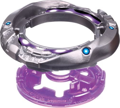 Phantom's Metal Frame is a wide and circular Wheel with a large circular hole for the Core to fit into place. It is very thick and has a smooth rounded outer side with four blue spheres. These blue spheres represent the Orion constellation, and are put in a manner that resembles it. On the front, it showcases a devious grin with visible sharp teeth, and a nose that can be used with the Orion Energy Ring eye stickers, to create the grinning face. It can also be flipped over to switch from Stamina Mode to Attack Mode, but Stamina Mode is recommended. The beys metal frame also has potential in attack mode which ties up to Fang leones counter attack mode. So this bey is great for stamina and attack.