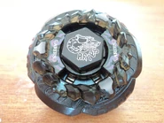 Rock has six large protrusions with small, shallow gaps between each one. It also overhangs the Spin Track much like the original Leone Metal Wheel, although to a smaller extent. Rock is outclassed by later releases, with its weight being unable to compete with most Fusion Wheels, and its rounded shape being too passive to be any real threat in Attack combinations.
