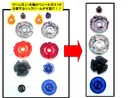 Circle Flat (CF) is the first new Performance Tip of the Beyblade: Shogun Steel toyline. Circle Flat is designed to work in the ZeroG stadiums and their swaying gimmick, and as such includes a large circular ring. The large ring grips the sides of the stadium, so it can go higher and shake the stadium. The ring features six circular designs. The size of the flat tip is the same as Wide Flat (WF).