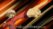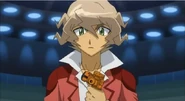 Taking place in the ZeroG BeyStadium, Shinobu toyed with Zyro, having an easy battle on his side. Zyro attempted to counter this by commanding his Beyblade, the Samurai Ifraid W145CF to the air and clash down to hit Saramanda. Despite this attempt, Shinobu quickly commanded Shinobi Saramanda to evade, in a quick reflex. As a result, Zyro's Ifraid was trapped and Shinobu saw this as his chance and used his Saramanda to knock-out Samurai Ifraid and take the win.[1]