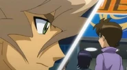 Later in the semi-finals against Kira Hayama once again, Shinobu uses all of his strength during the battle. But because he is fighting against Kira's new Beyblade, Gladiator Bahamut SP230GF he has trouble due to its powerful strength and suffers for it. Because Soul Ring Assault was not strong enough to defeat the Emperor of Destruction, Kira and Bahamut use Gladiator Demolition, causing destruction on the stadium and destroying Bahamut in the process. Shinobu, now injured and unconscious due to the new bey's unbeatable strength, has lost a chance to enter the finals. Zero avenges his loss by beating Kira and winning Neo Battle Bladers. Shinobu comes out to congratulate his friend. Tsubasa says there will be a world tournament coming soon.