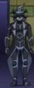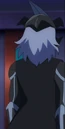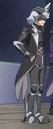 Silver Eye is a mysterious Blader who wears an asymmetrical black mask with a single silver horn pointing towards the left. He wears a black uniform with silver accents and a matching black and silver sleeveless tailcoat.