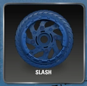 Slash is a very thin core making it one the fastest energy cores. The original Slash core is navy blue in color. It has small gaps in it for better traction. Though Slash has amazing speed it lacks power. it is the second lightest of all cores. The first being Toxic.