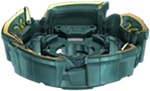 Eternal features a sharp tip of a small diameter surrounded by a free-spinning dish made of PolyOxyMethylene (POM) thermoplastic, akin to a combination of Revolve and Bearing. The sharp tip of Eternal provides low friction with the stadium floor, resulting in high Stamina and Burst Defense properties. While the small diameter of the sharp tip may imply easy Destabilization, the wide diameter of the free-spinning ring helps maintain Stability. The wide diameter of the ring also provides Eternal high Precession time which is useful against Opposite-Spin and Mobile Stamina Combinations. However, due to the low friction of POM plastic, Eternal has slightly less Knock-Out Resistance compared to its predecessor Revolve.