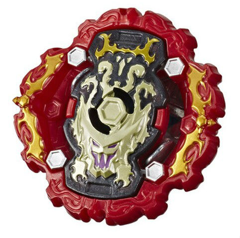Hasbro's Hydrax H5 is a left-spin GT Chip that features a monstrous face and four snake heads, representing the Hydra, a serpentine monster from Greek mythology. In the center of the GT Chip is a hexagon that is intended to resemble the center of the Ten Weight. Hydrax H5 has a below average weight for GT Chips, and low Burst Resistance.
